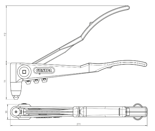 • Wąska głowica kleszczy do trudno dostępnych miejsc nitowania